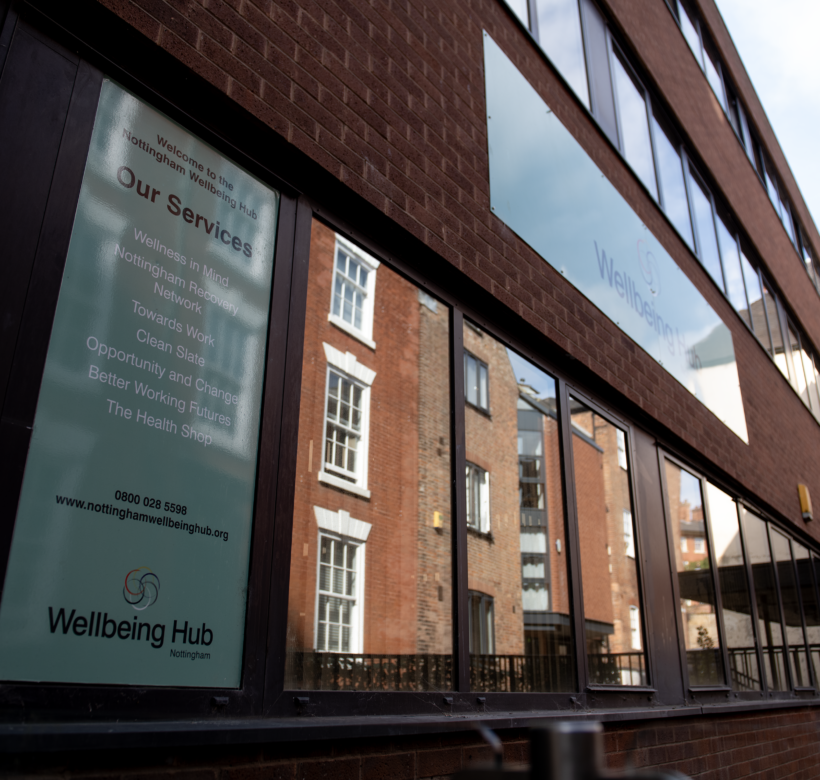 Our team is based at The Wellbeing Hub in Nottingham city centre. We support people living in Nottingham City through every stage of recovery – from first contact to longer‑term support in the community.